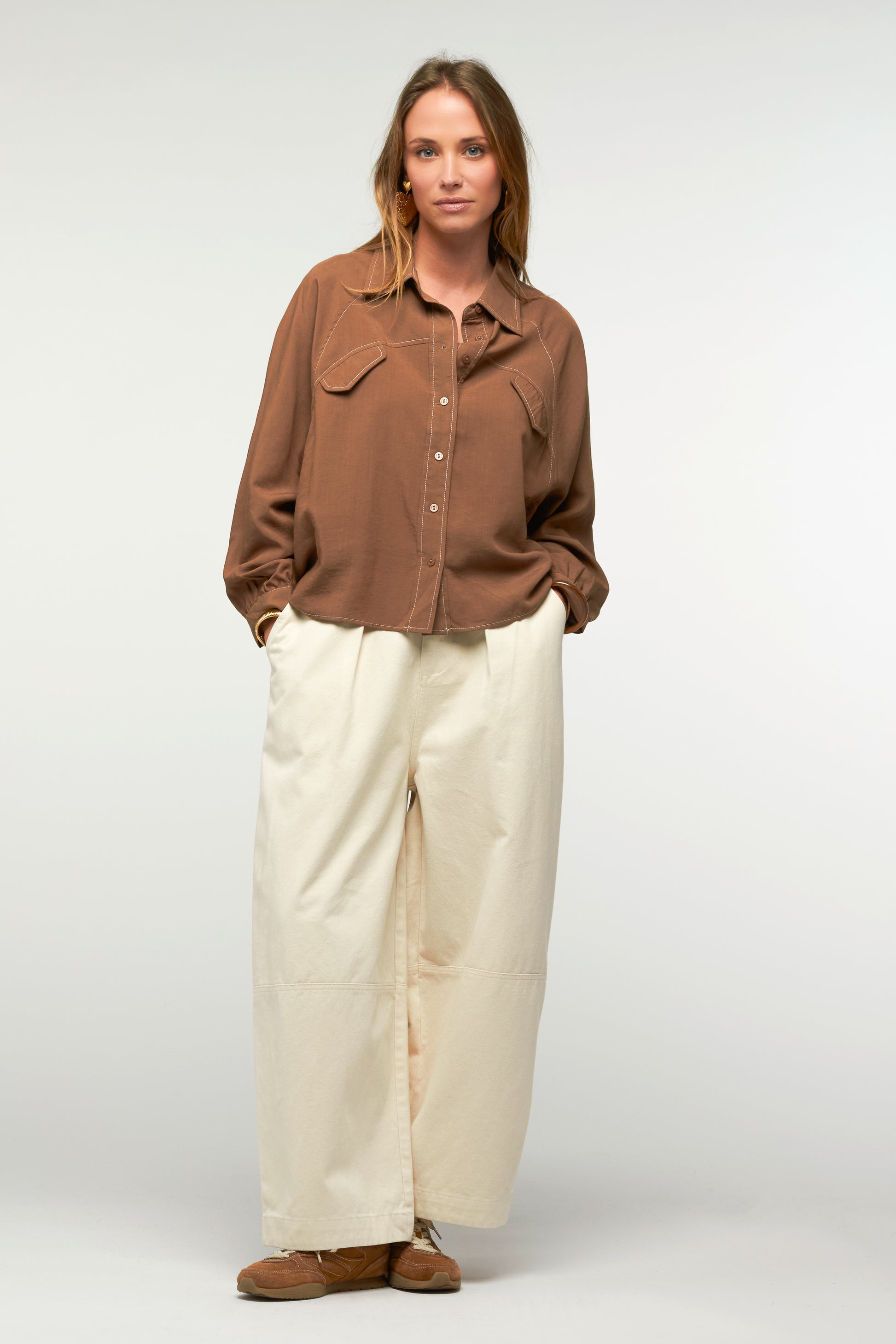 Ce pantalon à la coupe ballon structurée par des pinces affirme une silhouette contemporaine et tendance. Confectionné en 100 % coton, il offre une belle tenue tout en restant agréable à porter au quotidien. Son volume maîtrisé apporte du caractère à la pièce, tout en conservant un équilibre entre confort et style.