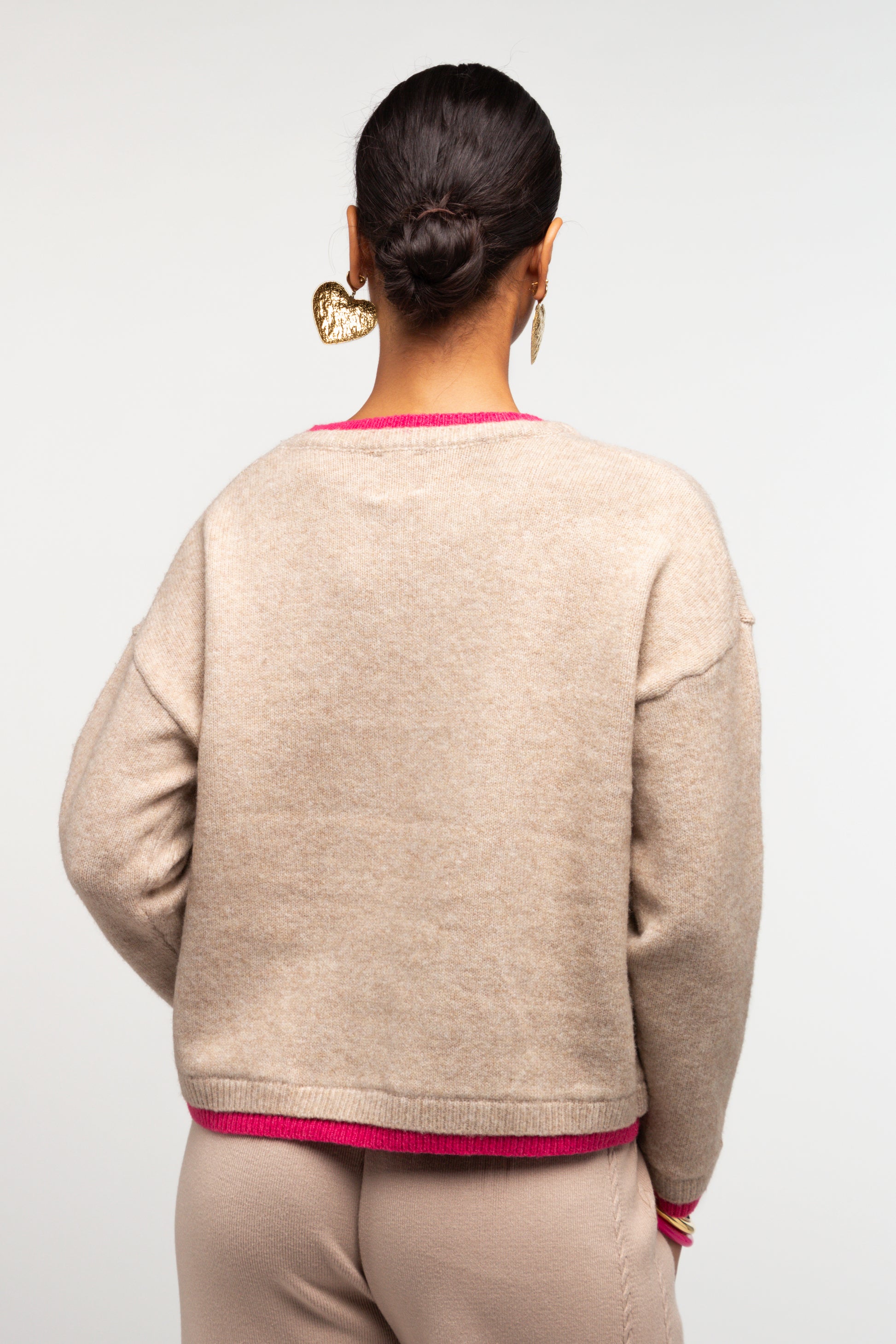 Le pull SANDRA mise sur la simplicité avec une touche de contraste subtile. Sa coupe droite et confortable en fait une pièce facile à porter au quotidien, pensée pour accompagner naturellement toutes les silhouettes. Le col rond et les finitions contrastées au col, aux poignets et à la base viennent réveiller la maille avec discrétion et modernité.