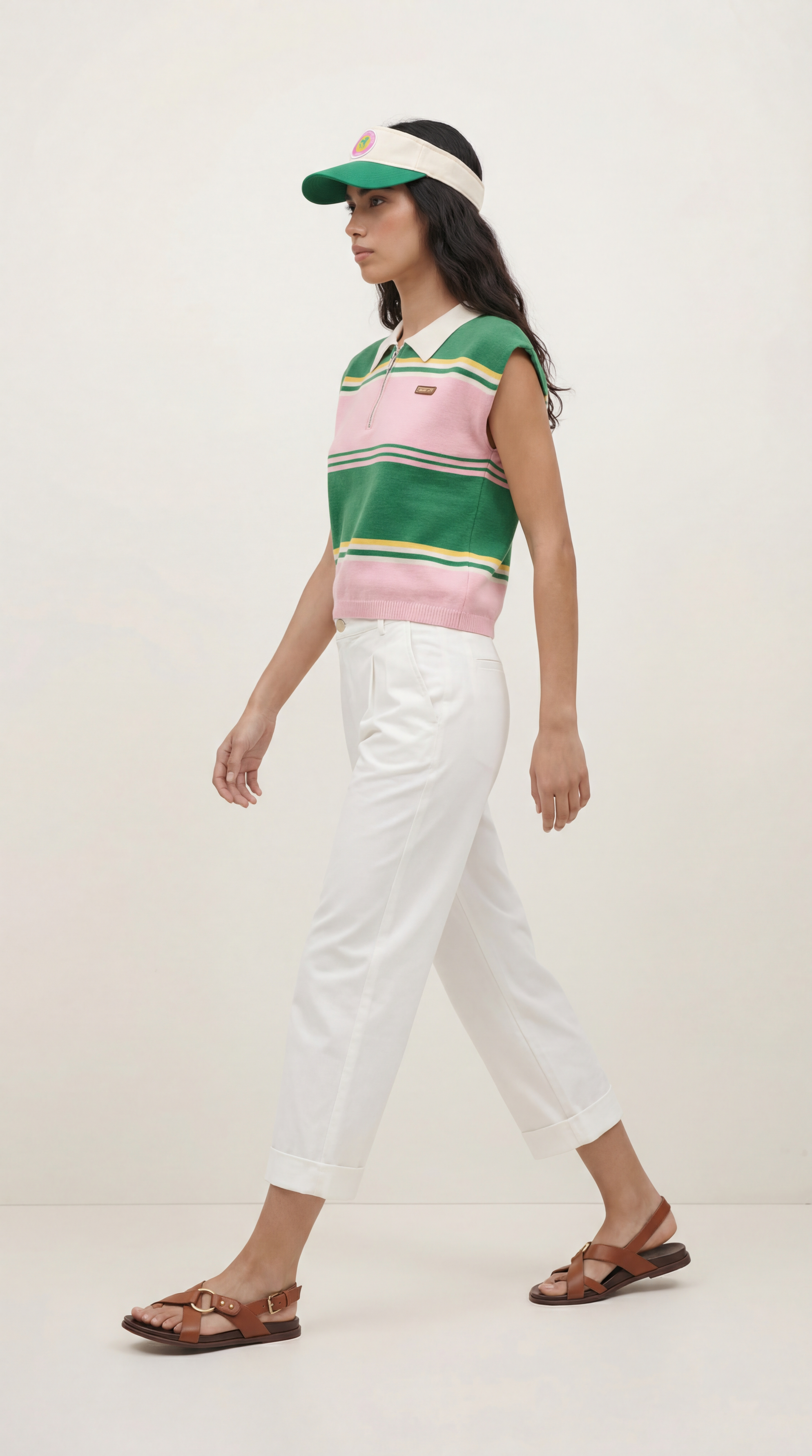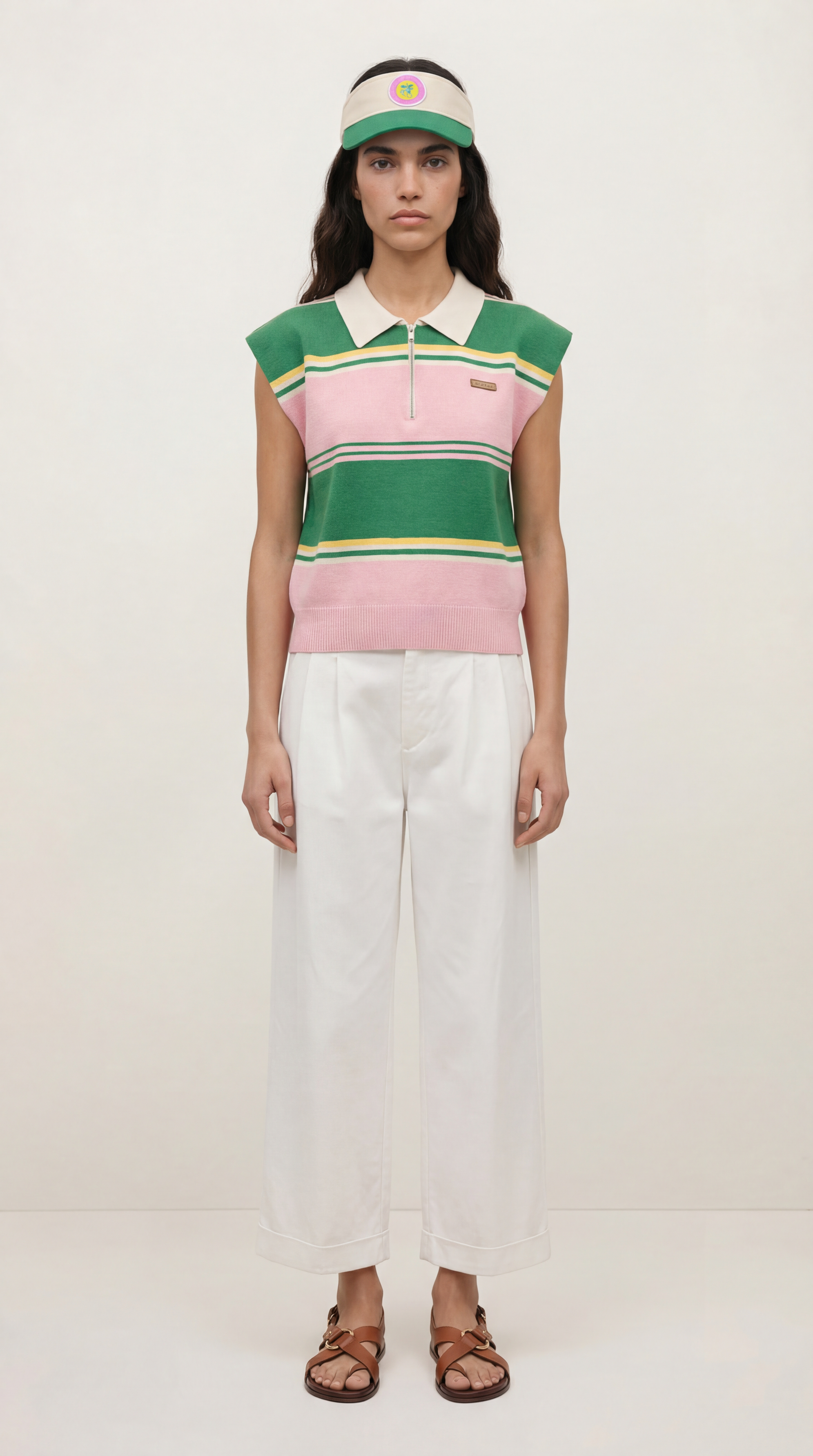 Le top Zoe séduit par ses rayures et sa coupe moderne qui apportent du caractère à la silhouette. Léger et agréable à porter, il est décliné en rayures chocolat et ecru et rayures vertes et roses, deux versions graphiques et tendance. Il se porte avec un jean ou un pantalon pour un look actuel et facile.