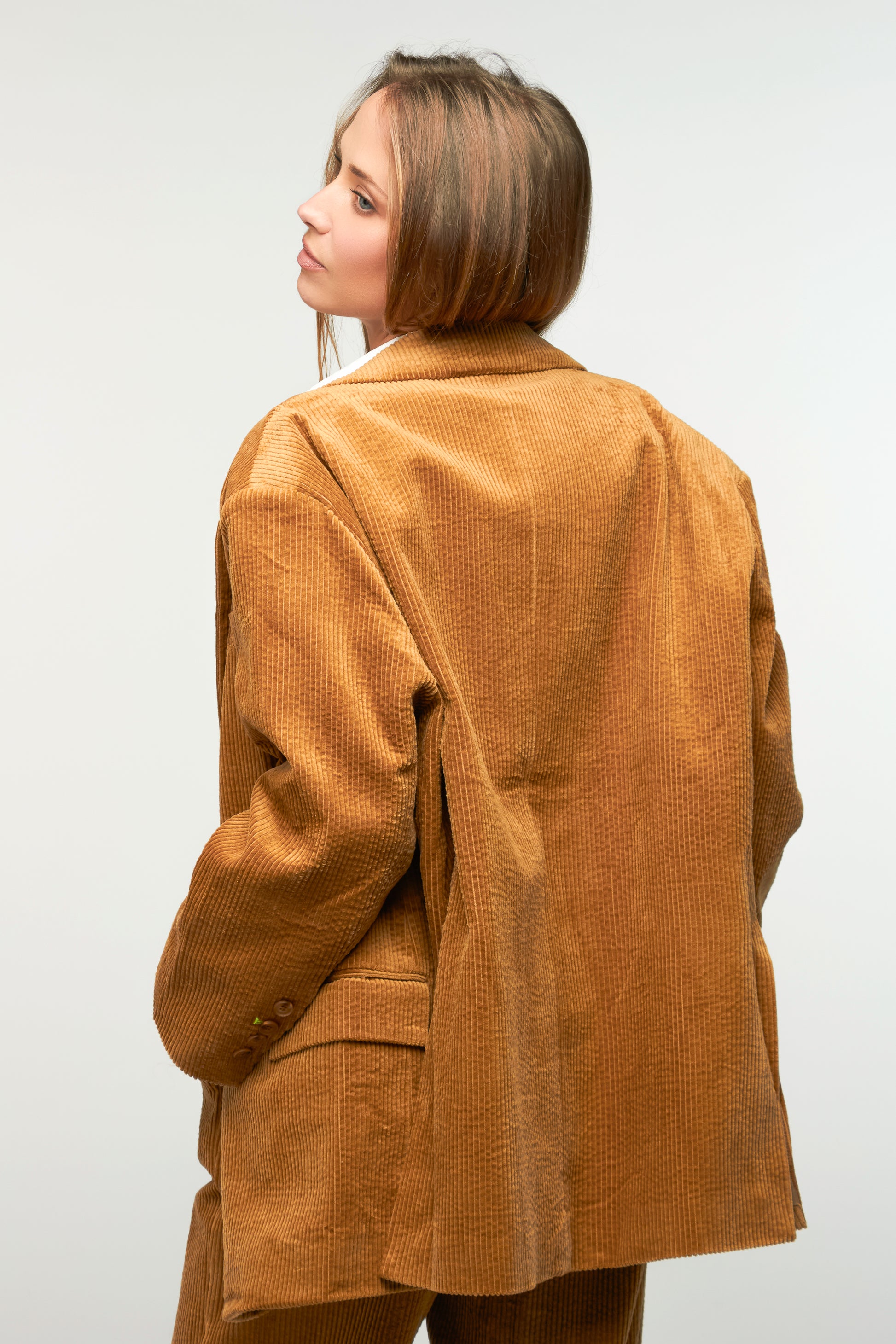 Le blazer Boy séduit par sa silhouette masculine et sa matière raffinée en velours côtelé. Sa coupe légèrement ample apporte une allure moderne et naturelle, tandis que le velours côtelé lui donne du caractère et une belle tenue.
